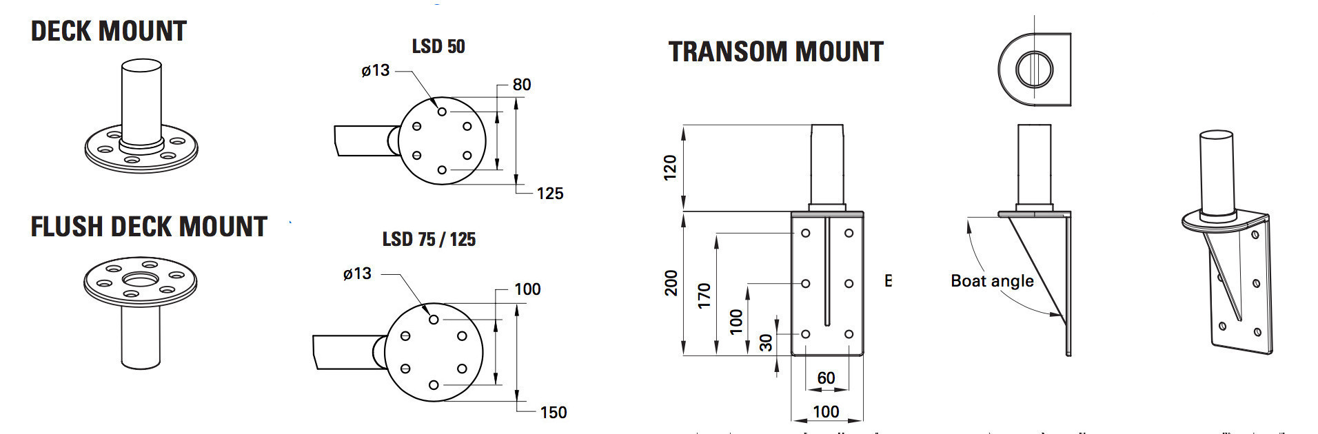 - Lieferbar für Deckmontage, bündige Deckmontage oder Heckmontage