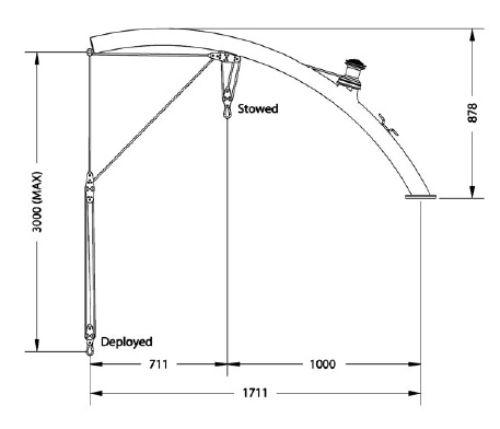 Diese innovativen Davits sind eine neue stylische Ergänzung zu den bisherigen Simpson Davit Modellen. Dieses System hebt den Tender mittels einer Talje (manuelle Bedienung über eine horizontal montierte Seilwinde) in ausreichendem Abstand zur Badeplattform. Sobald der Tender oben ist, wird er eingeklappt und sicher unter den Davits geborgen.