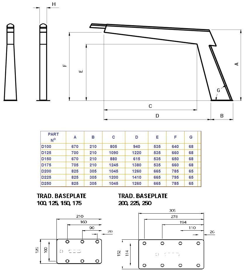 Unsere Modell- und Masstabelle für die Traditional Davits: