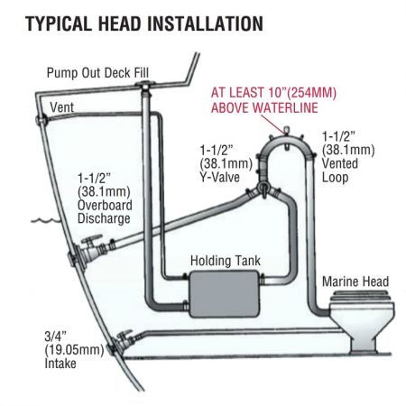 Typische Toiletteninstallation mit Entlüftung und Grauwassertank: