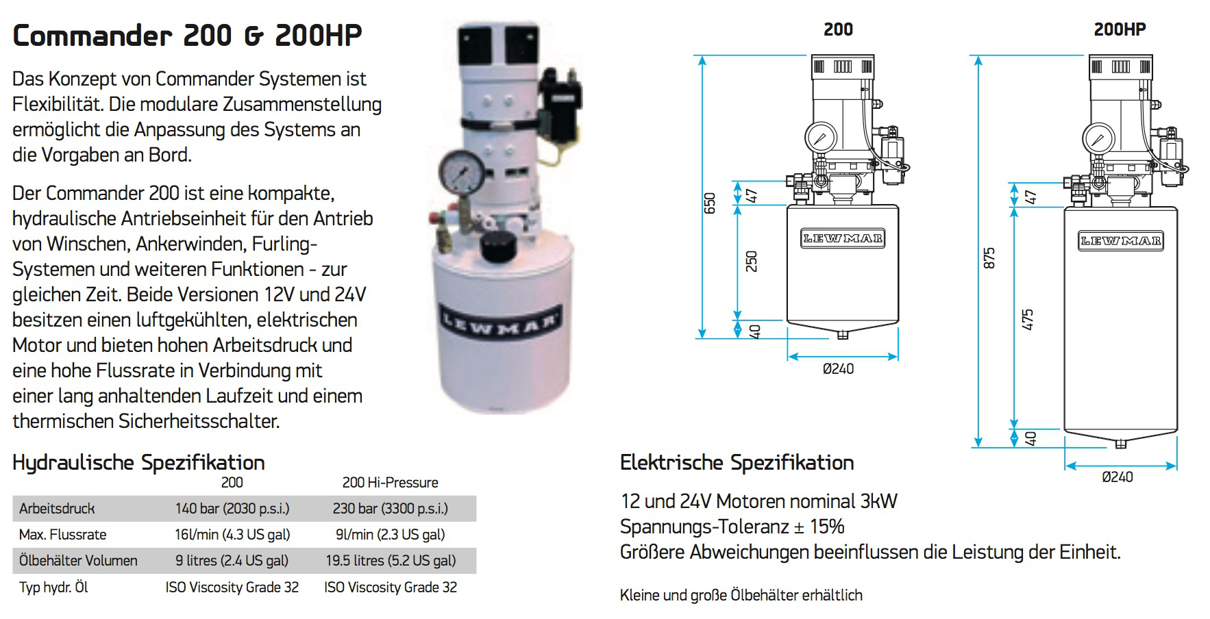 Lewmar Zentralhydraulik Systeme