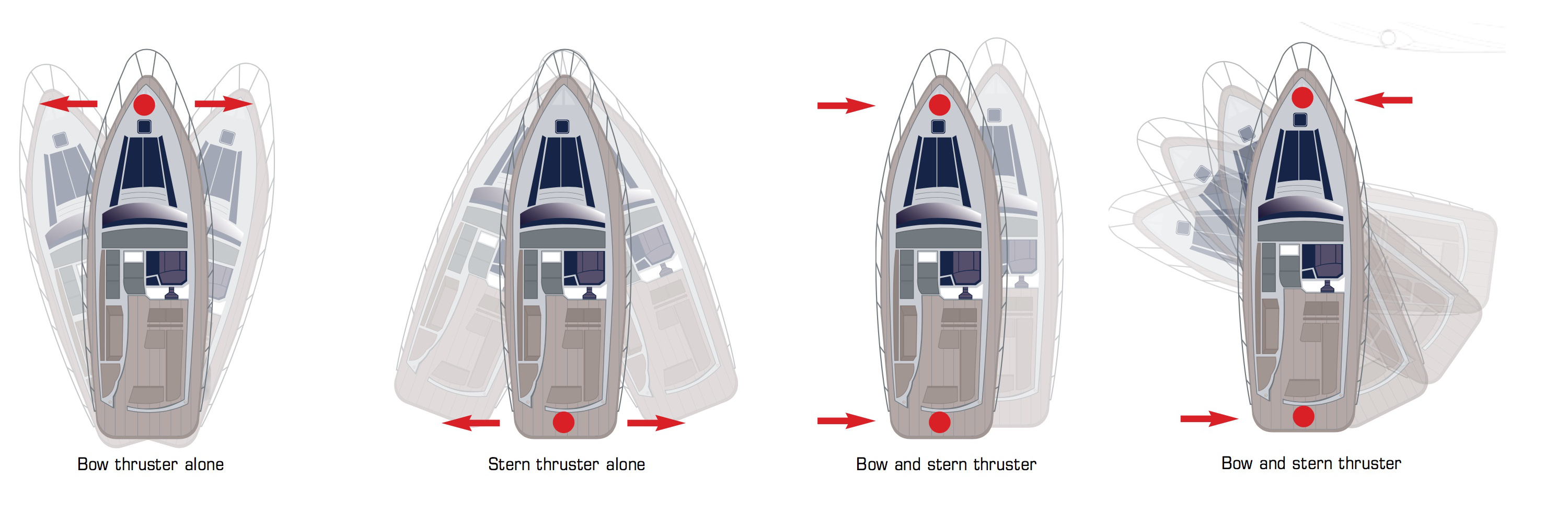 Der kombinierte Einsatz eines Bug- und Heckstrahlruders sorgt für mehr Kontrolle beim Manövrieren unter schwierigen Bedingungen oder in engen Kurven.