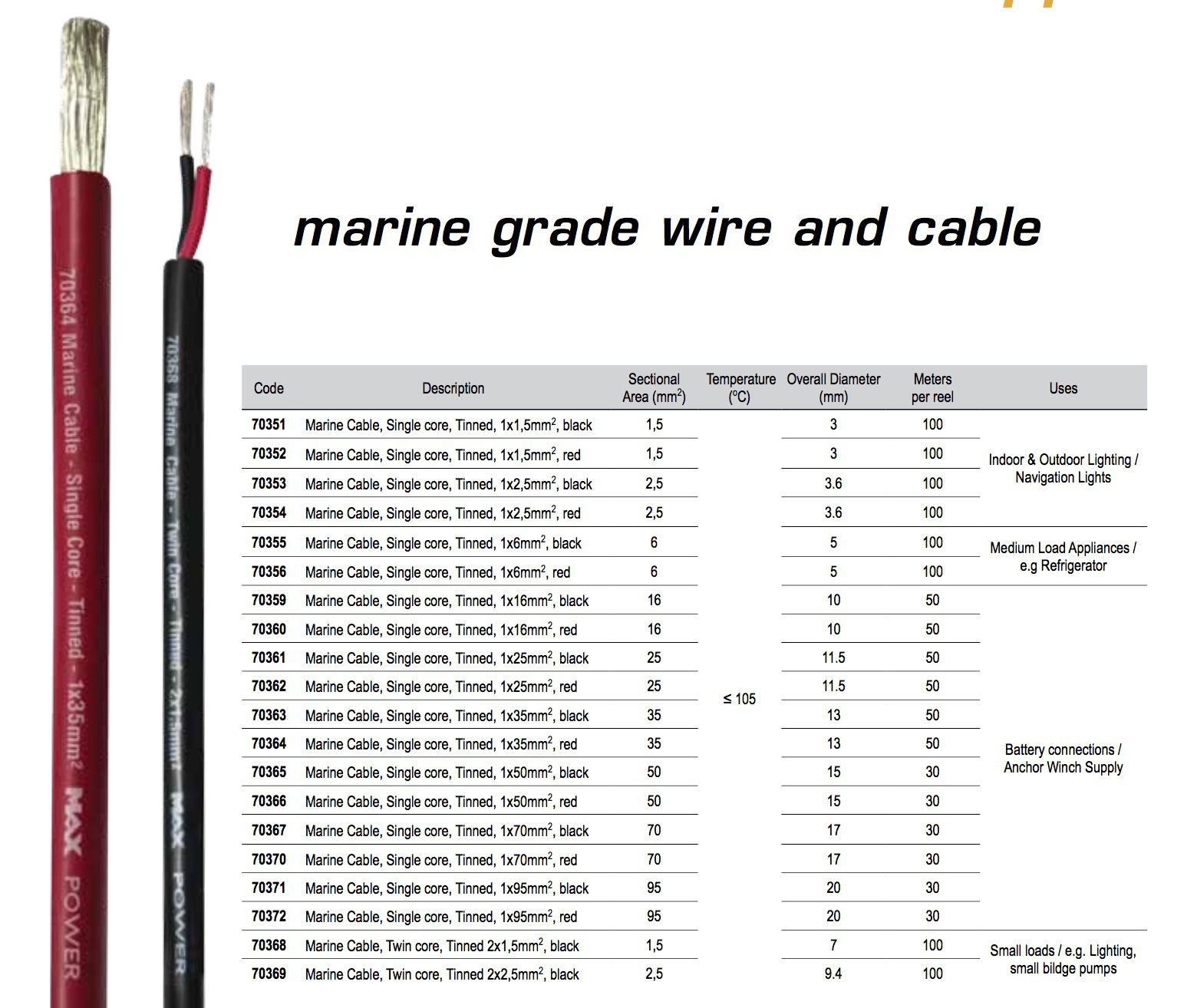 MAX POWER erkennt die Wichtigkeit von qualitativ hochwertigen, zuverlässigen elektrischen Marine-Kabel und Kabel. Sowohl bei nassen als auch bei trockenen Bedingungen muss sich Seekabel beständig verhalten, um richtig funktionieren zu können.