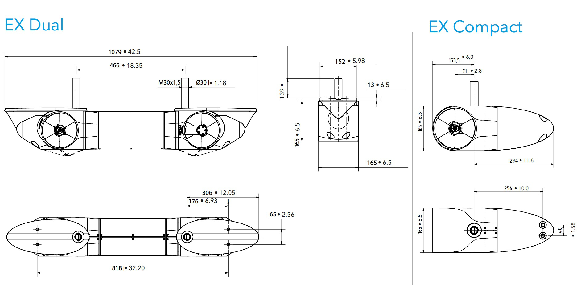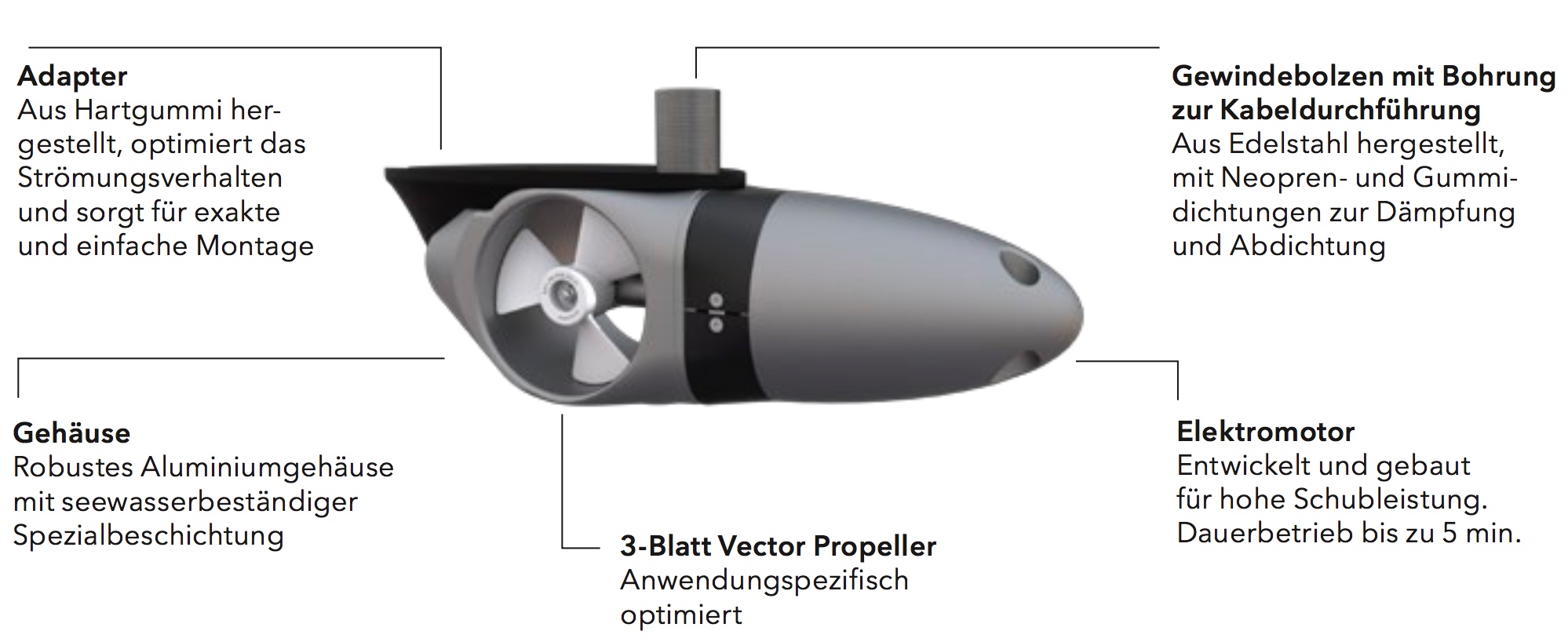 Die extern montierbaren Bug- und Heckschrauben der EX Serie sind praktische Einbaulösungen für Verdränger und Halbgleiter zwischen 6 und 18 m Länge. Unabhängig von Rumpfform, Rumpfmaterial und Antriebssystem eignen sich diese Modelle vor allem dann, wenn eine Tunnelbugschraube nicht eingebaut werden kann oder eine extrem kompakte Heckschraube benötigt wird.