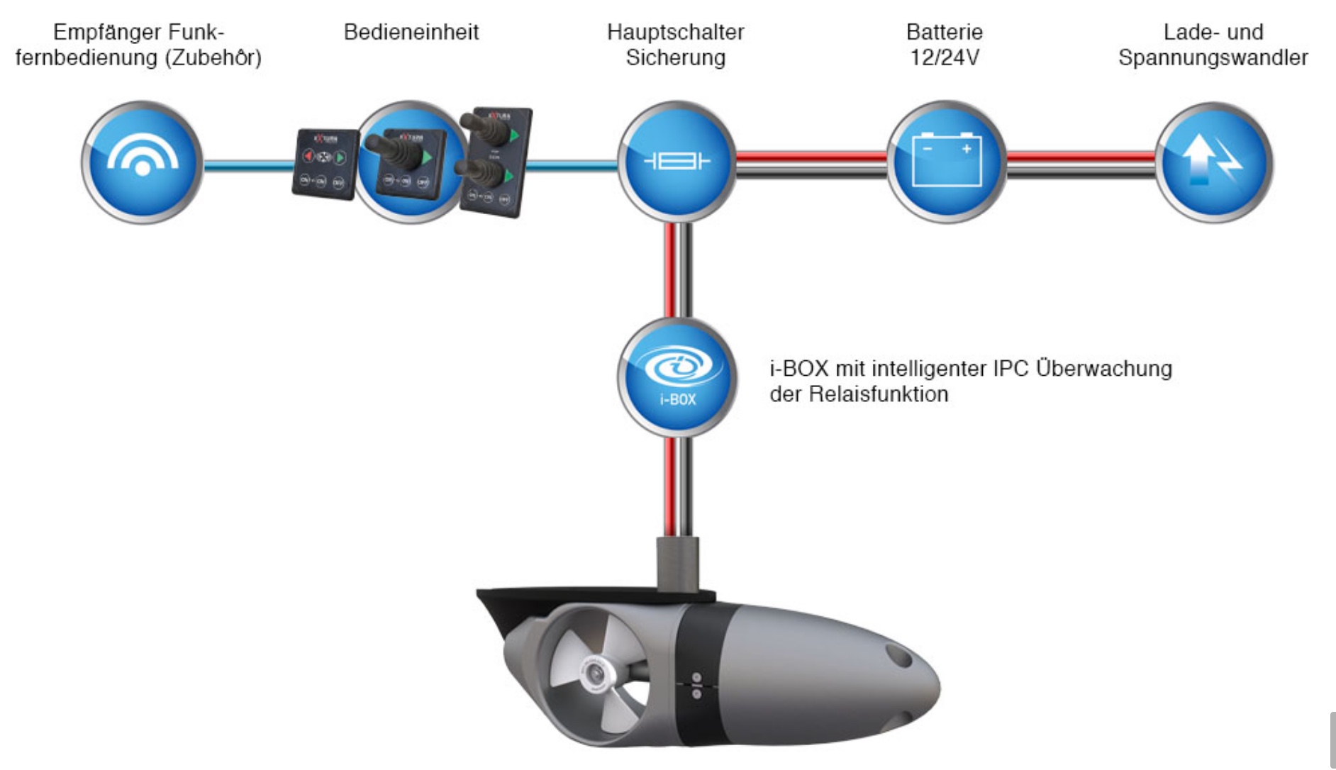 - Durch die näher am Bug liegende Einbauposition (1 bis 1.5 m), erhöht sich die Hebelwirkung um mindestens 20%