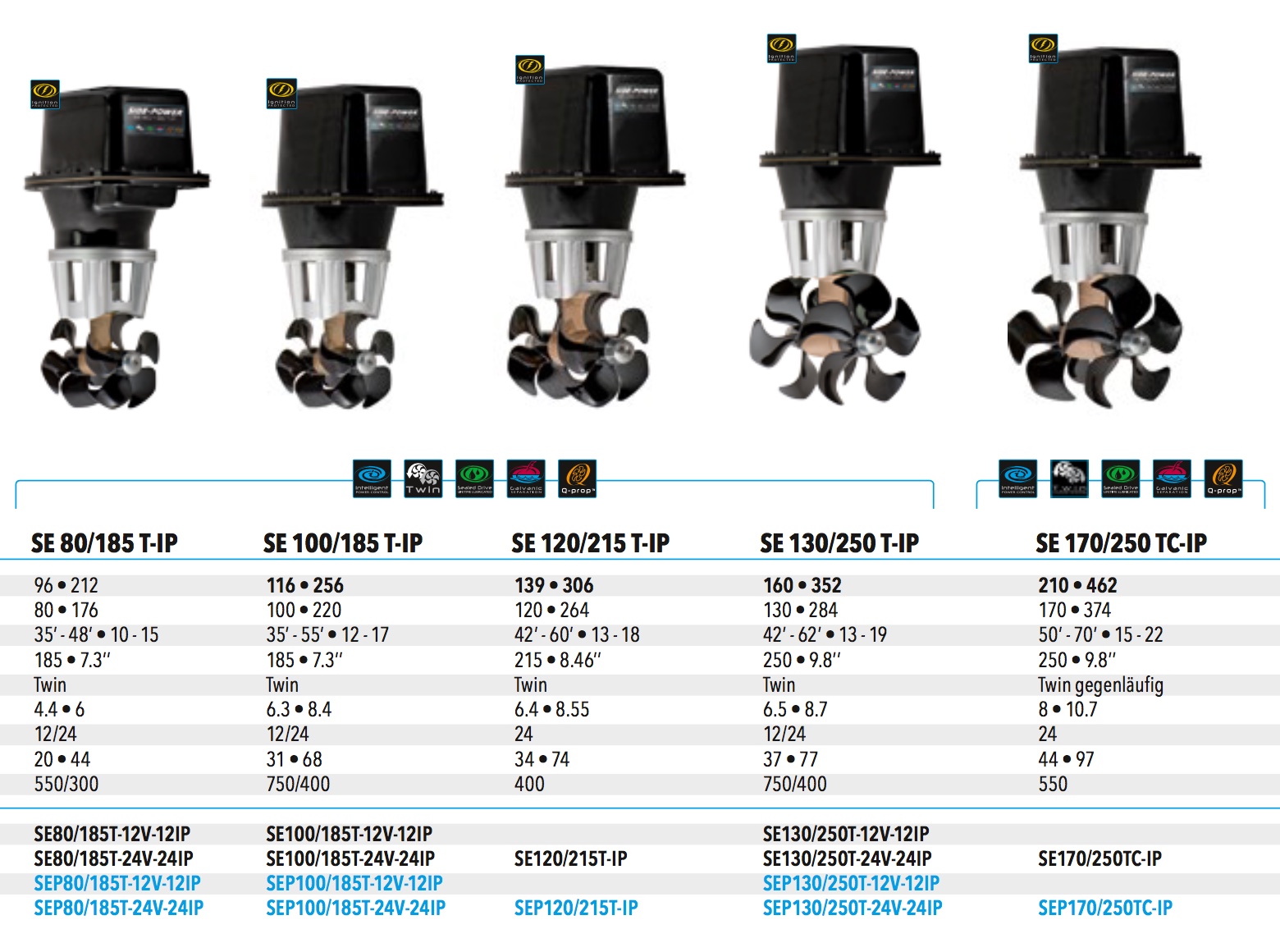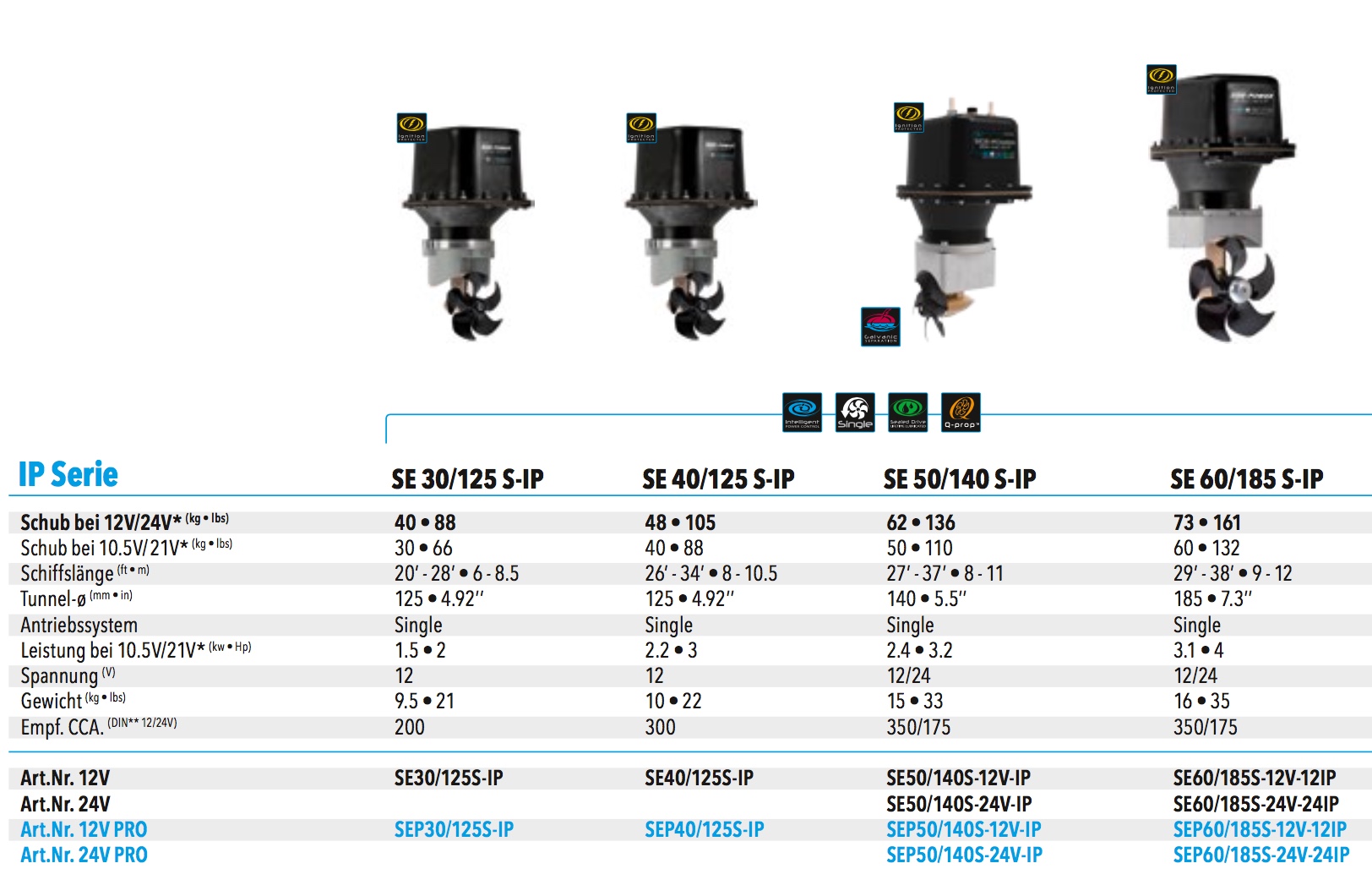 Basis für IP-RPO Bugschrauben sind die normalen IP Modelle, die mit einem System zur Drehzahlregulierung erweitert werden. Durch die exakte Steuerung der Schubleistung lässt sich das Boot noch souveräner manövrieren und die mögliche Betriebszeit der Bugschraube deutlich verlängern. Weitere Vorteile sind die Absenkung des Geräuschniveaus sowie die Festellfunktion der Schubleistung an der Bedieneinheit. Mehr dazu hier.