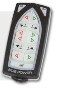 Eine Side-Power Fernbedienung bietet in Kombination mit drehzahlgeregelten Bug- und Heckschrauben eine nochmals erweiterte Funktionalität. Die am Joystick Panel mit Hilfe der Feststellfunktion eingestellte Schubleistung lässt sich während des Anlegemanövers mit der Fernbedienung nachregeln, falls mehr oder weniger Schub benötigt wird. Ist das Boot sicher festgemacht, oder wird die eingestellte Schubleistung nicht mehr benötigt, kann die Feststellfunktion direkt an der Fernbedienung gelöst bzw. abgestellt werden. Dazu muß nur kurz die jeweilige Taste für die entgegengesetzte Schubrichtung gedrcckt werden.