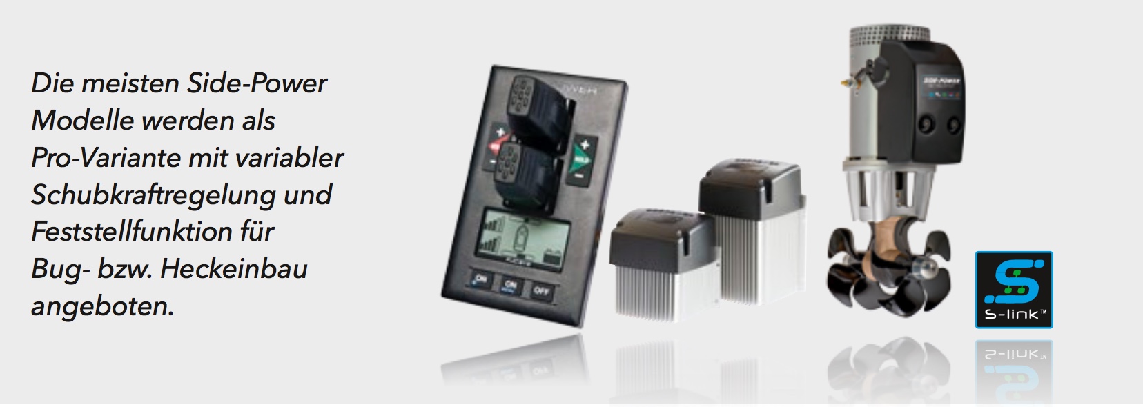 - Sämtliche Side-Power 12 und 24 V Bugschrauben können mit PRO Dehzahlregelung ausgerüstet werden