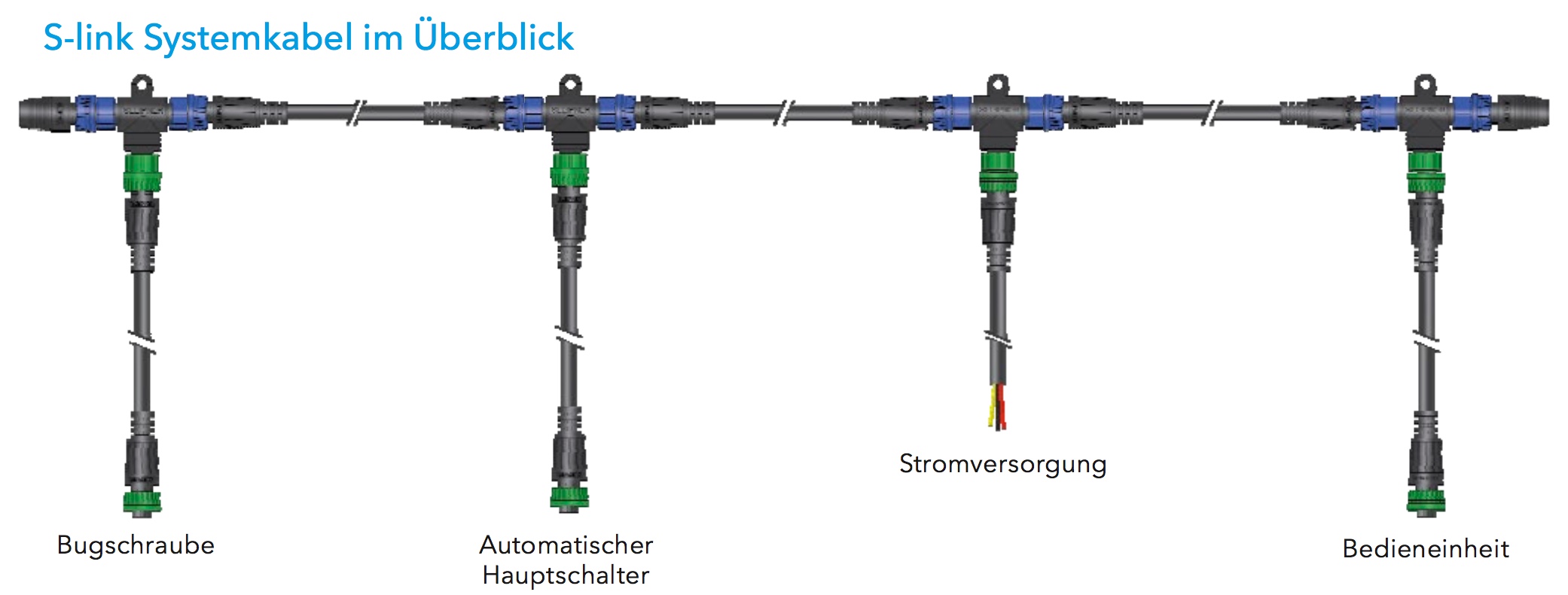 Das S-link System ist eine auf CAN-Bus Technologie basierende Steuerung, die vergleichbar mit einem Computer-Netzwerk eine umfassende und intelligente Kommunikation zwischen allen im System befindlichen Geräten ermöglicht. Es wird bei den ausfahrbaren Bugschrauben und den drehzahlgesteuerten Modellen genutzt.